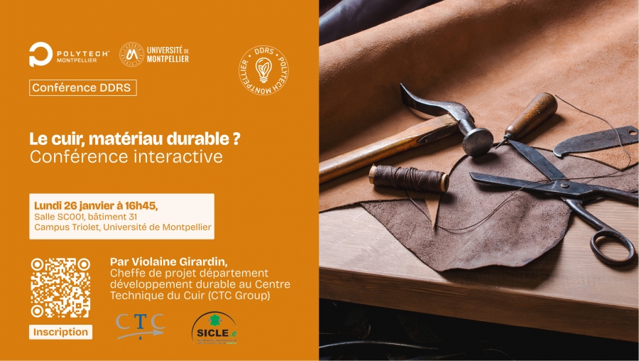 Le cuir, matériau durable ? - Lundi 26 janvier à 16h45, Salle SC001, bâtiment 31, Campus Triolet, Université de Montpellier