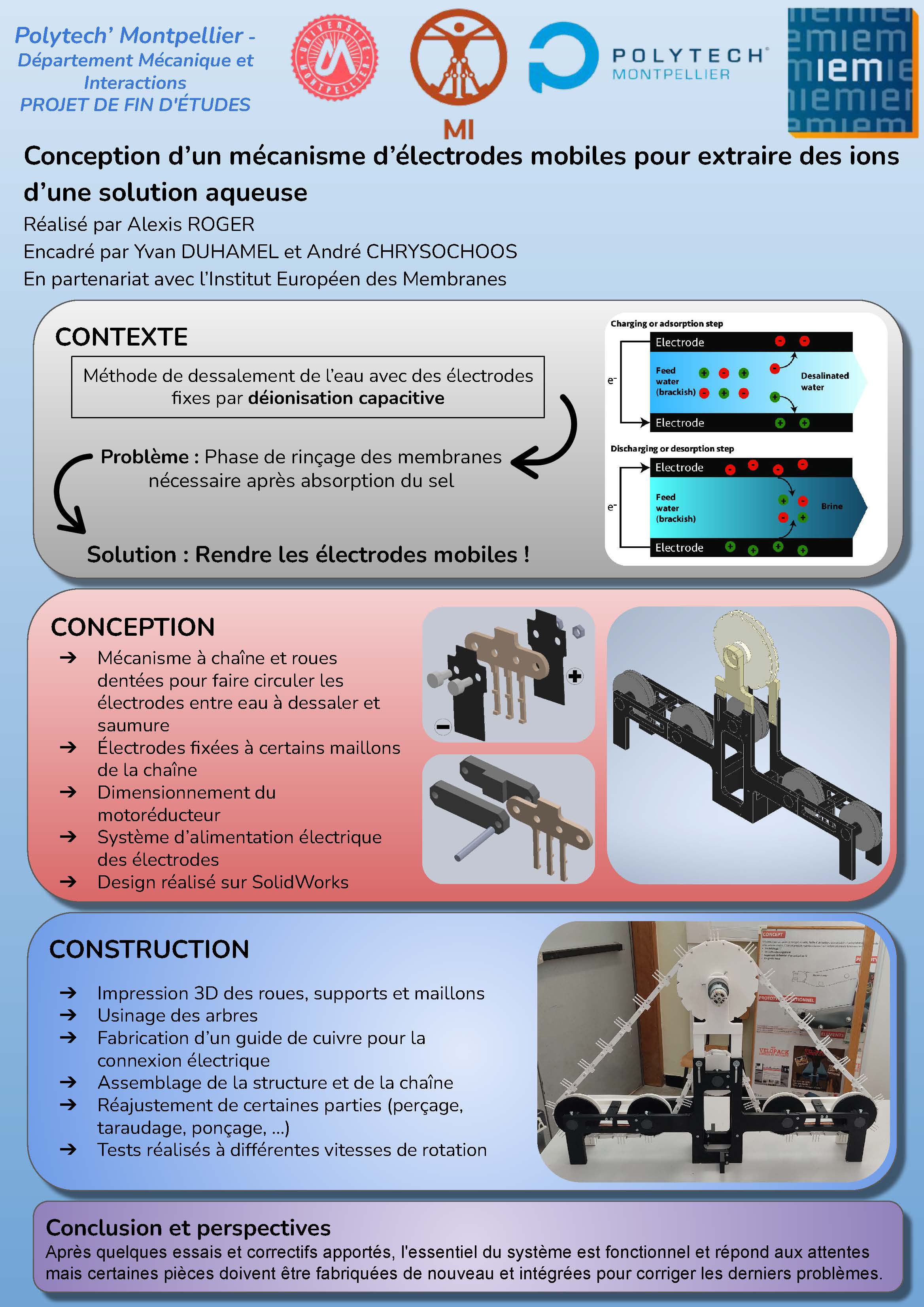 Conception d'un mécanisme d'électrodes mobiles pour extraire des ions d'une solution aqueuseAlexis ROGER - MI